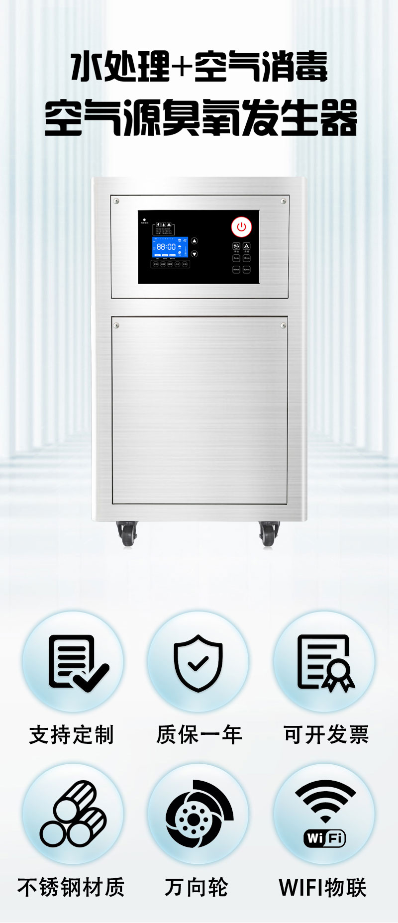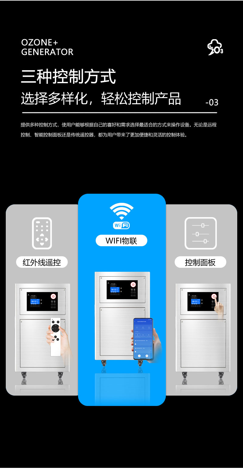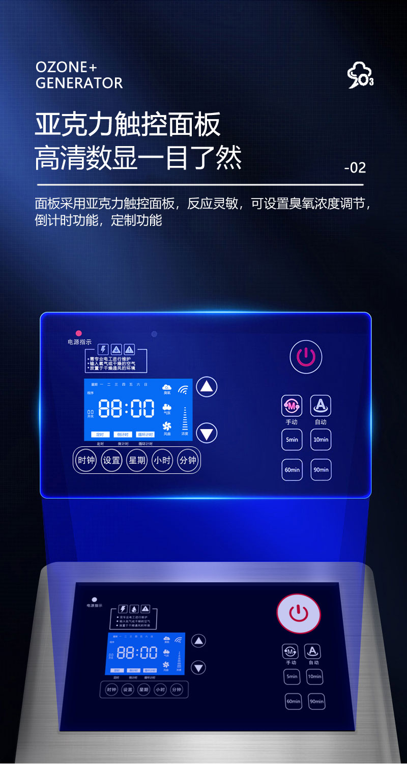 ◆控制面板:飛歌立式智能臭氧發(fā)生器控制部件,是飛歌電子部門自主設(shè)計,研發(fā)的控制板,具有觸控、Wf物聯(lián)、遙控的控制功能
